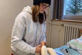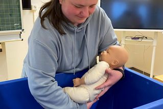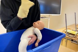 In den letzten beiden Unterrichtswochen übten fünf angehende Kinderpflegerinnen und ein Kinderpfleger im Unterrichtsfach Gesundheit und Pflege unter Federführung von Christiane Groß-Schmidt das Baden, Wickeln und Handling des Säuglings.