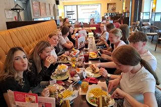Ende Juli machte sich die AHR 11 auf zur GLÜXXINALE in Köln. Nachdem Schülerin Ruth Markmann bereits im Vorfeld einen der zehn Jury-Preise gewonnen hatte, durfte sie nun beim Poetryslam am 8. Juli 2025 das Gedichtete vortragen. Unter großem Beistand der Mitschüler*innen und der anderen Mitstreiter*innen gab es als zweiten Gewinn dann auch noch einen Publikumspreis in Höhe von 800€. Eine tolle Leistung, und eine schöne Summe für die Klassenkasse! Gefeiert wurde das Ganze dann auf der Kurzklassenfahrt mit sehr leckerem Essen. Begleitet wurden sie von Klassenlehrerin Esther Kracht und Deutschkollegin Dr. Carola Weber-Peeters.